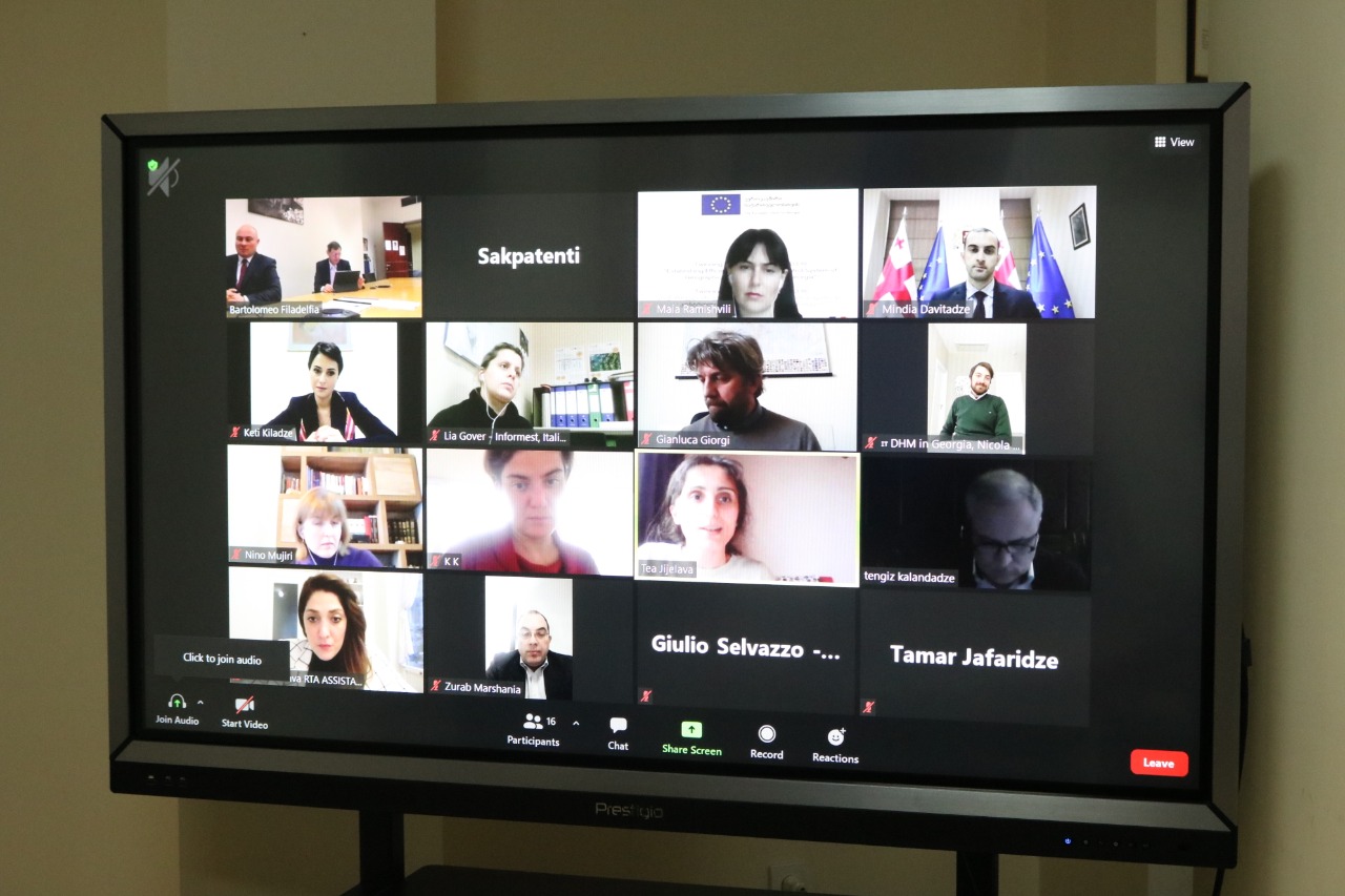 Due to the additional necessities arisen as a result of global pandemic and the related constraints, it was decided together with the partners to extend the Project for additional 7 months. The relevant document was signed on December 1, 2020 and it will ensure as much effective implementation of the Project as possible. Within the project, training is planned for Sakpatenti staff members on the procedures of registration of geographical indications, mechanisms of certification and exertion of control. It is also planned to hold joint training with the participation of Sakpatenti, the Ministry of Environmental Protection and Agriculture of Georgia and the National Wine Agency, aimed to familiarize with the activities of the French-Italian geographical indications committees and commissions and share their work experience.