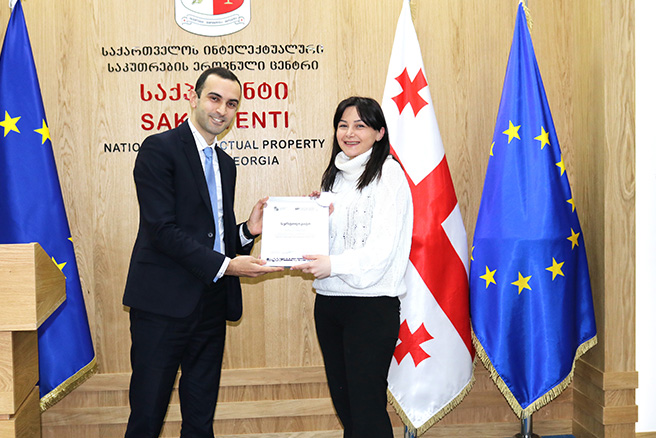Certificates of intellectual property trainers were handed over to Vakhtang Noghaideli, Tamar Chipashvili, Merab Doborjginidze, Ana Kobakhidze, Mano Giorgadze, Elene Chavleishvili, Sophio Mekanarishvili, Lekso Sabiashvili, Tamar Minjia and Elisabed Shengelia.