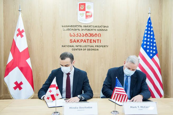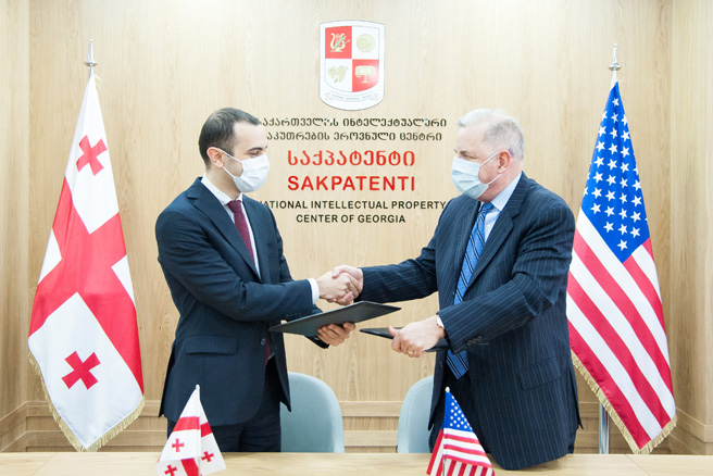 Sakpatenti and the United States Agency for International Development (USAID) start cooperation to improve the intellectual property rights enforcement system in creative industries. To this end, on March 25, 2021, Mr. Mindia Davitadze, Chairman of National Intellectual Property Centre of Georgia Sakpatenti, and Mr. Mark McCord, USAID Economic Security Program Chief of Party, signed a Memorandum of Understanding.