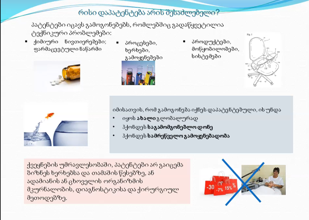 Sakpatenti Training Centre organized the meeting, where participants of the Competition were provided with general information on intellectual property, invention, patent and their use. Attention was also focused on Sakpatenti activities and procedures of obtaining a patent. The 90-minute webinar was attended by leaders of 30 teams who have moved to the semifinal, the management of the Millennium Challenge Account – Georgia and members of the evaluation commission of the Competition. It is noteworthy that this year the representative of Sakpatenti is participating for the first time in the commission of the Competition with the status of a member of the jury.