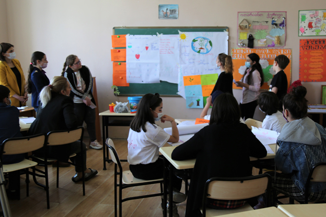At the event, the pupils presented the business project related to “Kaliandre”, to intellectual property trainers of Sakpatenti Training Centre and experts participating in the EUGIPP, in which they reflected the prototype of breeding of new apple variety, title, logo, product characteristics and instruction for care, also defined the product price and promotion campaign including video commercial script and messages.