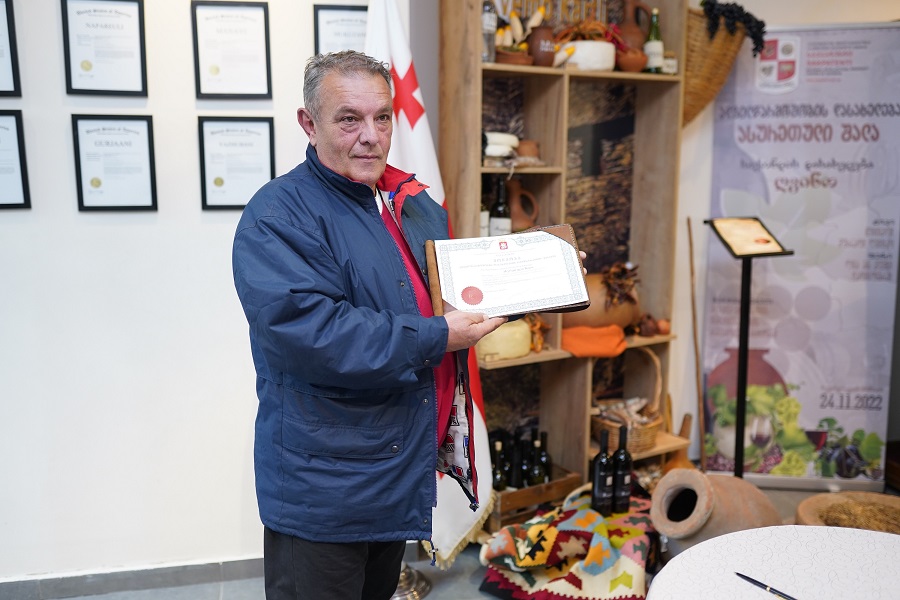 of the National Wine Agency, handed over the certificate to Mr. Aleksandre