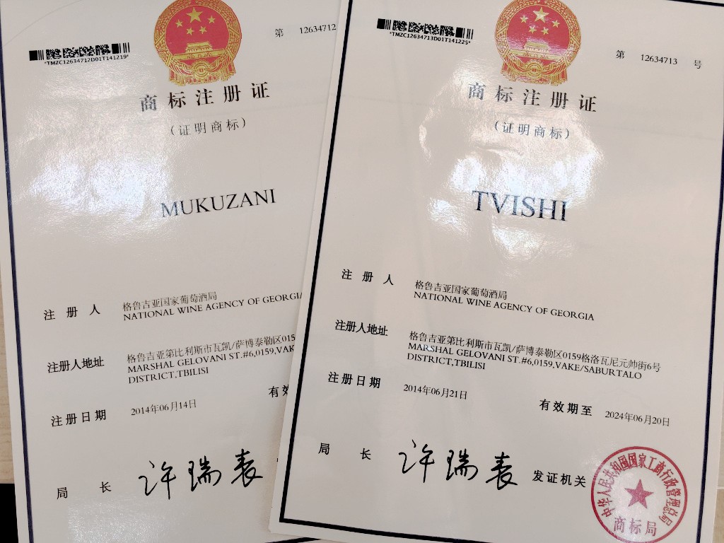 „ჭაჭა“, „ხვანჭკარა“, „წინანდალი“ და „ქინძმარაული“ დავის საგანია საქპატენტსა და ჩინურ კომპანიებს შორის 2014 წლიდან. საქპატენტმა ჩინეთის სასაქონლო ნიშნების უწყებაში 2013 წელს შეიტანა 6 განაცხადი ქართული ღვინის ადგილწარმოშობის დასახელებების ,,ტვიში”, ,,ხვანჭკარა”, ,,წინანადალი”, ,,ქინძმარაული”, ,,მუკუზანი” და ქართული გეოგრაფიული აღნიშვნის ,,ჭაჭა” დასარეგისტრირებლად. უწყებამ 4 განაცხადზე უარყოფითი გადაწყვეტილება გამოიტანა იმ მოტივით, რომ ისინი მსგავსი იყო უკვე რეგისტრირებული სასაქონლო ნიშნებისა. მხოლოდ 2 დასახელებაზე ,,მუკუზანი” და ,,ტვიში” ექსპერტიზა გაგრძელდა ჩვეულებრივ რეჟიმში და 2015 წლის იანვარში ორივე მათგანზე გაიცა რეგისტრაციის მოწმობა. ასევე, 2015 წელს ,,ხვანჭკარის” რეგისტრაცია გაუუქმდა ფიზიკურ პირს, რომელსაც არაკეთილსინდისიერად ჰქონდა დარეგისტრირებული ქართული ღვინის ადგილწარმოშობის დასახელება და გასაჩივრების ვადის ამოწურვის შემდეგ დასახელების მფლობელად ავტომატურად საქართველო დარეგისტრირდება. ქართულმა დელეგაციამ პეკინში შეხვედრაზე იმედი გამოთქვა, რომ სარჩელი სხვა სადაო დასახელებებზეც დაკმაყოფილდება. ასევე, გადაწყდა რომ, ჩინეთის მხარე საქპატენტს ჩაუტარებს ქართული ადგილწარმოშობის დასახელებების და გეოგრაფიული აღნიშვნების ძიებას, იმის გამოსავლენად, არის თუ არა რეგისტრირებული ქართული დასახელებების შემცველი ნიშნები ჩინეთის ტერიტორიაზე.