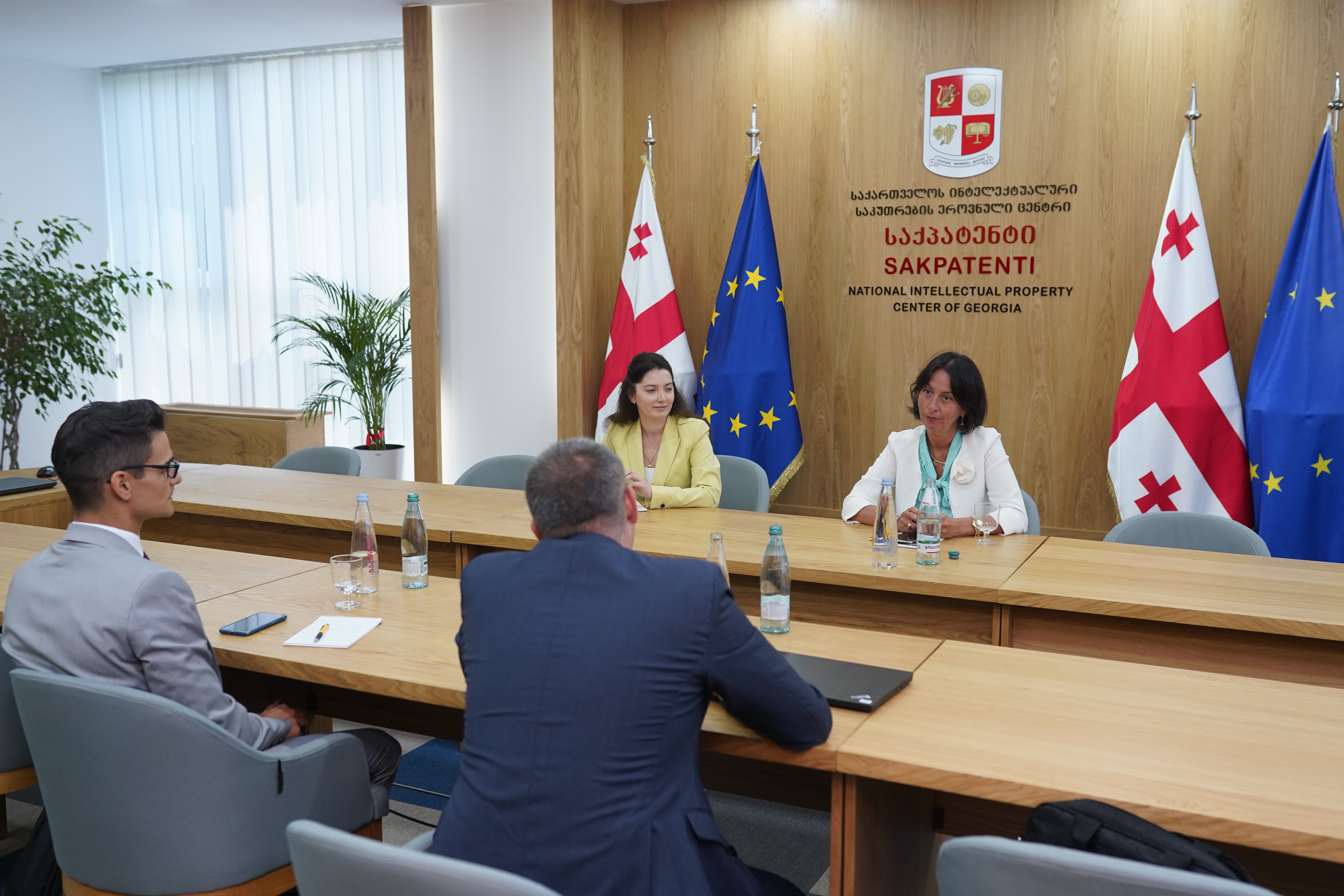 ინტელექტუალური საკუთრების სისტემის მხარდაჭერის საერთაშორისო თანამშრომლობის პროექტის „ევროკავშირისა და საქართველოს ინტელექტუალური საკუთრების შესახებ პროექტის (EUGIPP)“ მიმდინარეობის ადგილზე გასაცნობად, საქპატენტს პროექტის ლიდერი მარტინ მარიანოვი და პროექტის კოორდინატორი ანდრეა იორი ეწვივნენ. ვიზიტის მიზანია პროექტის კომპონენტების მიმდინარეობის განხილვა და პროექტის ფარგლებში, თბილისში დაგეგმილ ღონისძიებში მონაწილეობა. საქპატენტში სტუმრები გაეცნენ სასაქონლო ნიშნების, გეოგრაფიული აღნიშვნების და დიზაინის დეპარტამენტის, ასევე, იურიდიული, გამოგონებისა და ახალი ჯიშების დეპარტამენტების საქმიანობას.