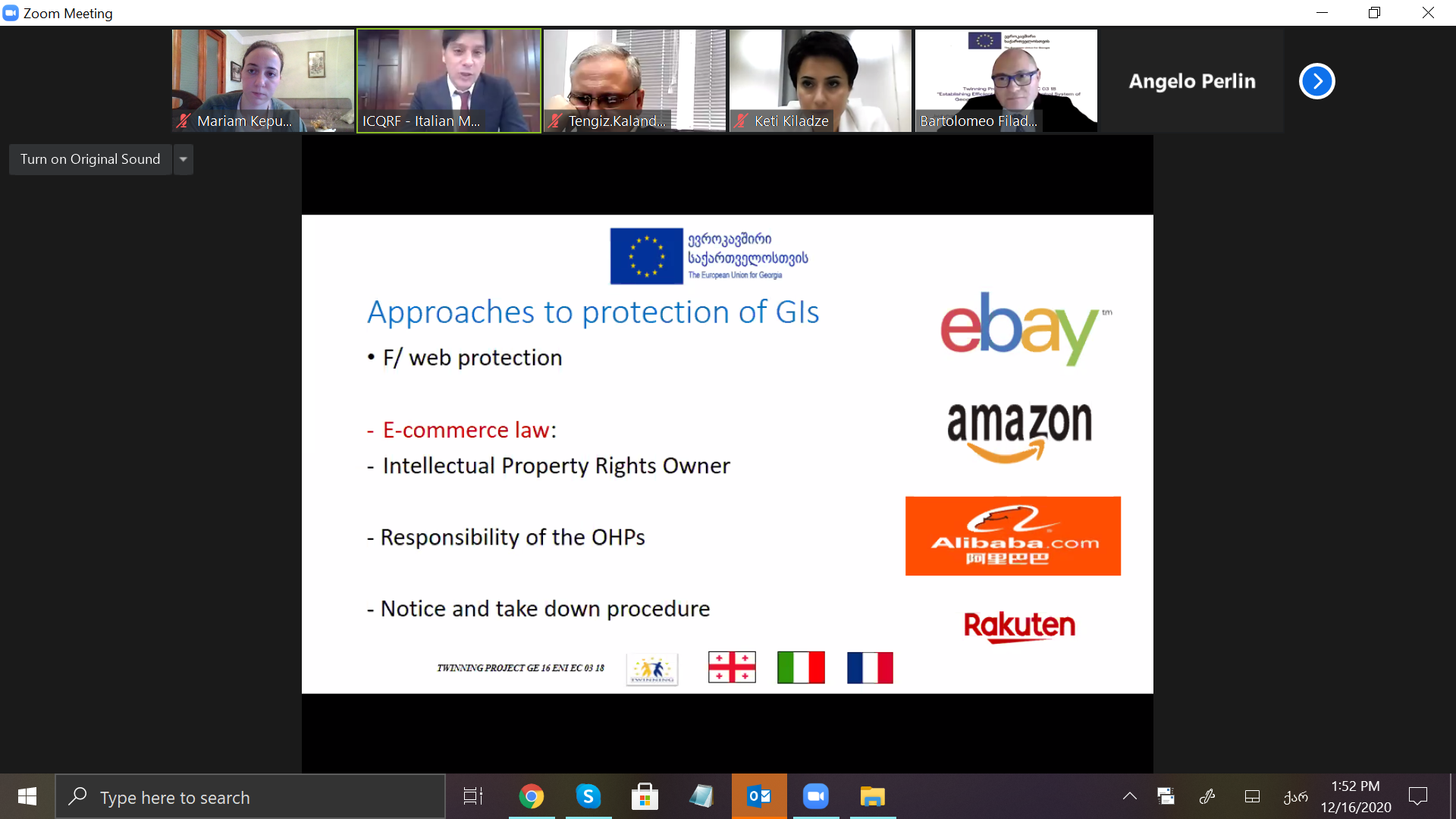 ციფრულ სივრცეში ინტელექტუალური საკუთრების ობიექტის – გეოგრაფიული აღნიშვნის კონტროლისა და მასზე უფლებების აღსრულების მექანიზმების შესახებ ტრენინგი გაიმართა საქპატენტის იურიდიული და სასაქონლო ნიშნების დეპარტამენტების თანამშრომლებისა და აღმასრულებელი უწყებების წარმომადგენლებისთვის. სიმულაციური პროცესების განხორციელება შესაძლებელი გახდა ევროკავშირის მიერ დაფინანსებული ტვინინგის პროექტის (GE/16 ENI EC 0318) „საქართველოში გეოგრაფიული აღნიშვნების ეფექტური დაცვისა და კონტროლის სისტემის დანერგვის“ ფარგლებში.
