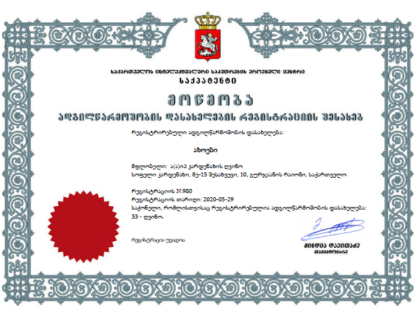საქპატენტის მიერ რეგისტრაციის მოწმობა გაიცა ადგილწარმოშობის დასახელებაზე „ახოები“. ის განსაკუთრებული ღვინოა - მუქი წითელი ფერის, უზადო, სავსე, ექსტრაქტული, ხავერდოვანი, ჰარმონიული გემოთი და არომატით. რეგისტრაციაზე განაცხადი ინტელექტუალური საკუთრების უწყებაში ა(ა)იპ კარდენახის ღვინომ შემოიტანა.