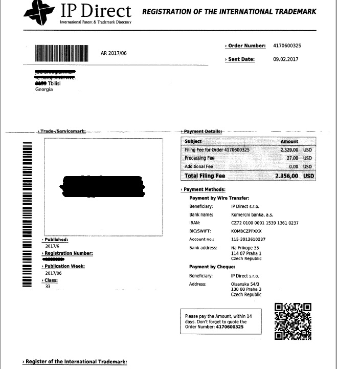 საქპატენტისთვის ცნობილი გახდა, რომ ორგანიზაცია “IP Direct -International Patent & Trademark Directory“ აგზავნის წერილებს საერთაშორისო ნიშნების განმცხადებლებთან და მათ წარმომადგენლებთან, ნიშნების რეგისტრაციის/გამოქვეყნების საფასურის გადახდის მოთხოვნით.